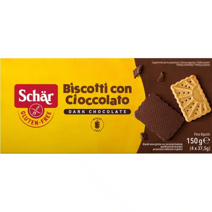 Biscuits chocolat noir Schär : gourmandise parfaite, légèrement sucrée et digeste.