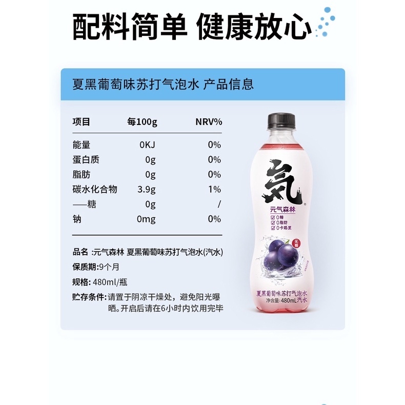 Genki Forest, Eau Petillante Sans Sucre aromatiser aux raisins, 480 ml