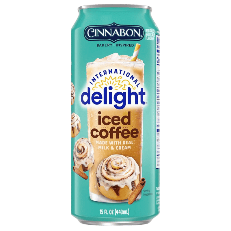 Café glacé goût brioche cannelle Cinnabon. Vrai lait et crème. Made in USA.