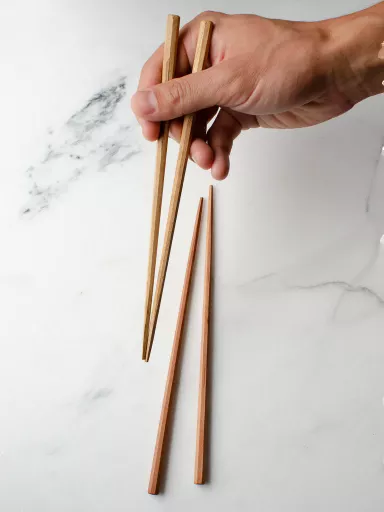 Une paire de baguettes coréennes, un ustensile indispensable aux asiatiques pour manger.